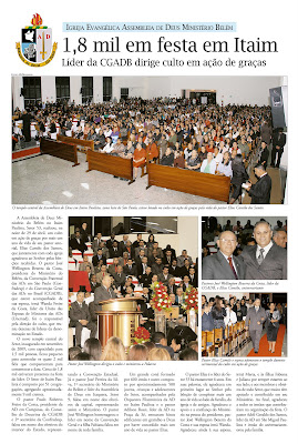- Assumiu a liderança da Assembleia de Deus em São Paulo, Ministério do Belém (SP), substituindo o Pr. Cícero Canuto de Lima.